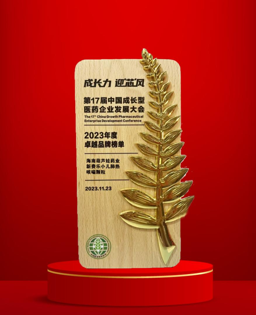 大会期间,一年一度的“金叶奖•2023年度医药行业风云人物奖”榜单重磅揭晓,大奖国际药业集团党委书记、董事长刘景萍荣耀上榜。金叶奖是为了表彰广大医药企业家或企业为行业茁壮发展做出的卓越贡献而设立的奖项,“金”象征着品质、品牌、影响力,“叶”象征着生命、健康、成长力。金与叶结合,有“敬业、兢业、竞业”之意。此外,集团黄金单品新费乐®小儿肺热咳喘颗粒凭借卓越的产品质量和品牌影响力赢得了行业、市场和消费者的肯定,获得了“2023年度卓越品牌奖”。